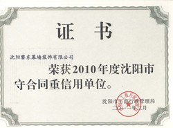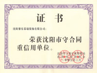 二00四年五月榮獲沈陽市守合重信用單位 |