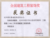 | 2011年榮獲沈陽市守合同重信用單位 | 2012年嘉里中心榮獲安全生產(chǎn)文明施工達標單位 | 2012年長春市市政府新建辦公樓榮獲遼寧省裝飾裝修行業(yè)科技創(chuàng)新成果獎 |