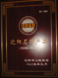 二00五年九月榮獲沈陽名牌產(chǎn)品 |