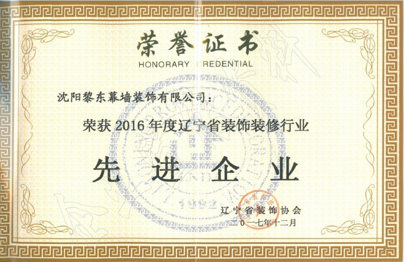2016年榮獲遼寧省裝飾裝修行業(yè)先進企業(yè) |